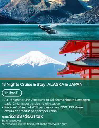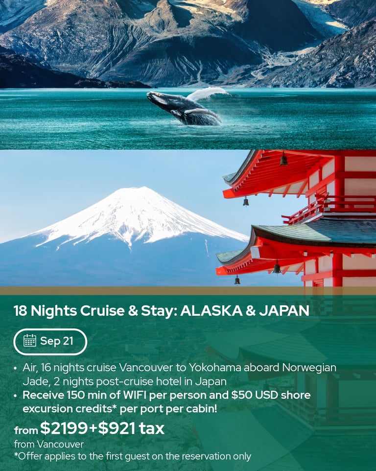 9 night cruise (Vancouver to Honolulu), beverage package & Wi-Fi
